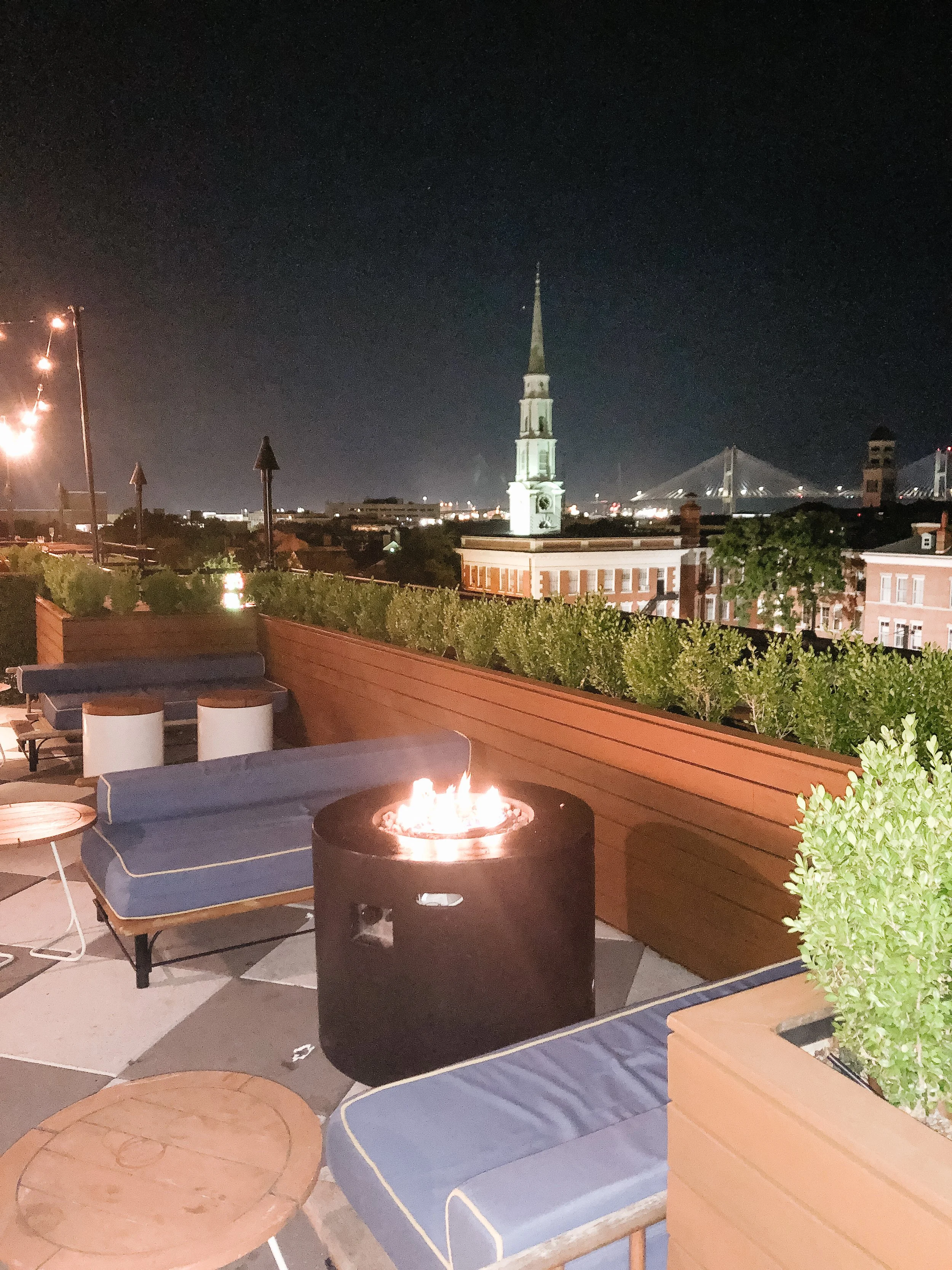 Peregrin Rooftop Bar- Southern elegance on top of the Perry Lane Hotel. FAVORITE roof top bar in Savannah. Awesome skyline views, fire pits for chilly evenings and they even have mini cups of Leopold’s ice cream for late night dessert!